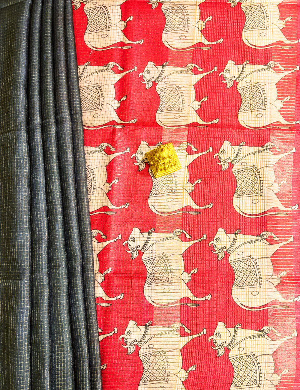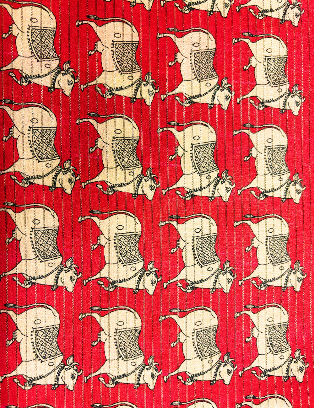 Elegant Pichwai Cow Print Tussar Saree Bring divine charm to your wardrobe with this exquisite Pichwai-inspired saree, featuring traditional cow motifs beautifully printed on a rich red base. The contrasting grey pallu and border add a touch of sophistication, making it perfect for festive occasions, cultural events, and traditional gatherings. Crafted with care, this saree effortlessly blends heritage art with contemporary elegance, ensuring you stand out with grace and style.