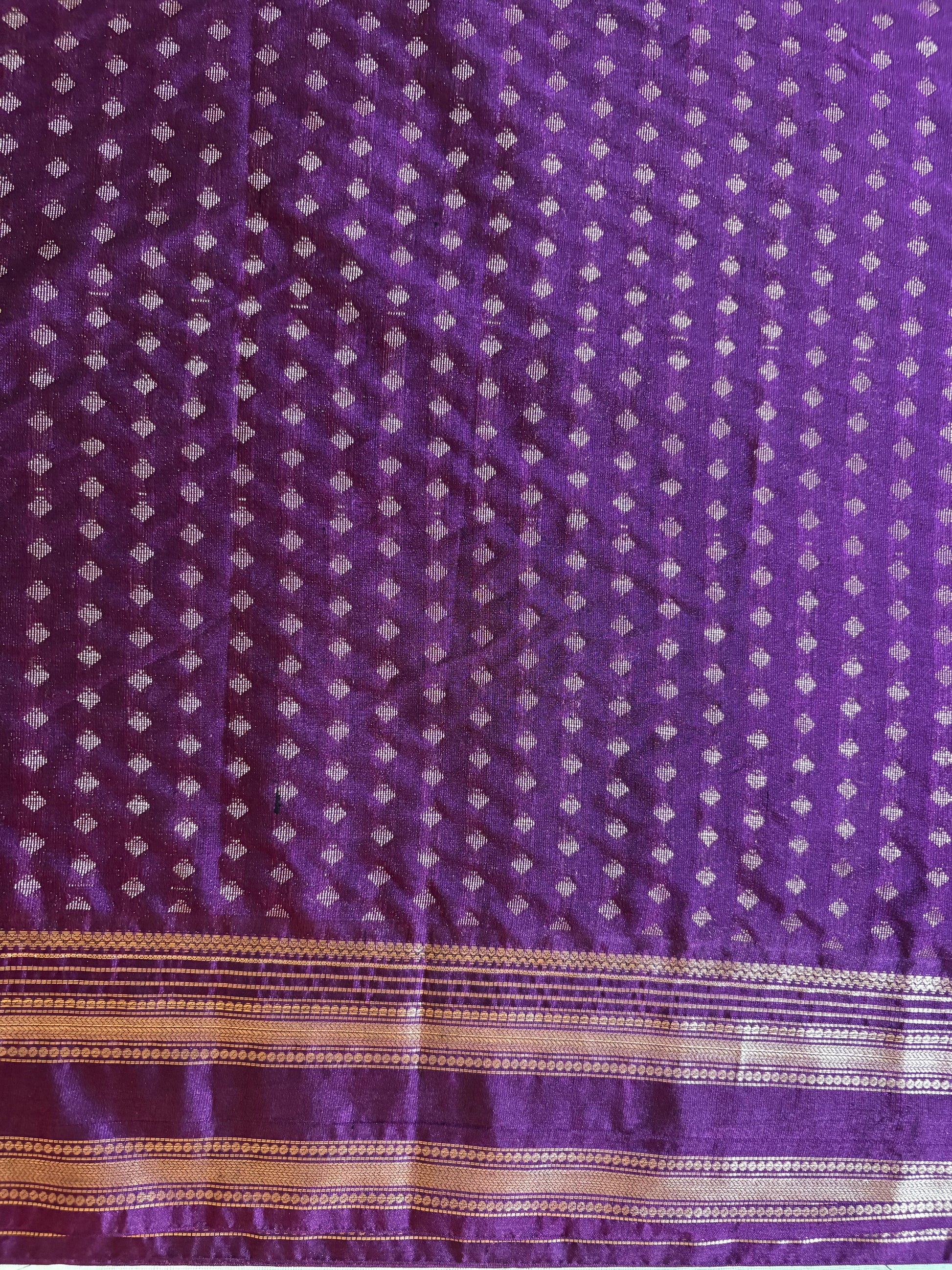 Elevate your elegance with this exquisite Navy Blue Semi silk Saree featuring intricate zari butta motifs across the body. The rich purple zari border with golden detailing adds a regal charm, making it perfect for festive occasions, weddings, and traditional celebrations. The soft cotton fabric ensures comfort while maintaining a graceful drape, giving you the perfect blend of tradition and style.